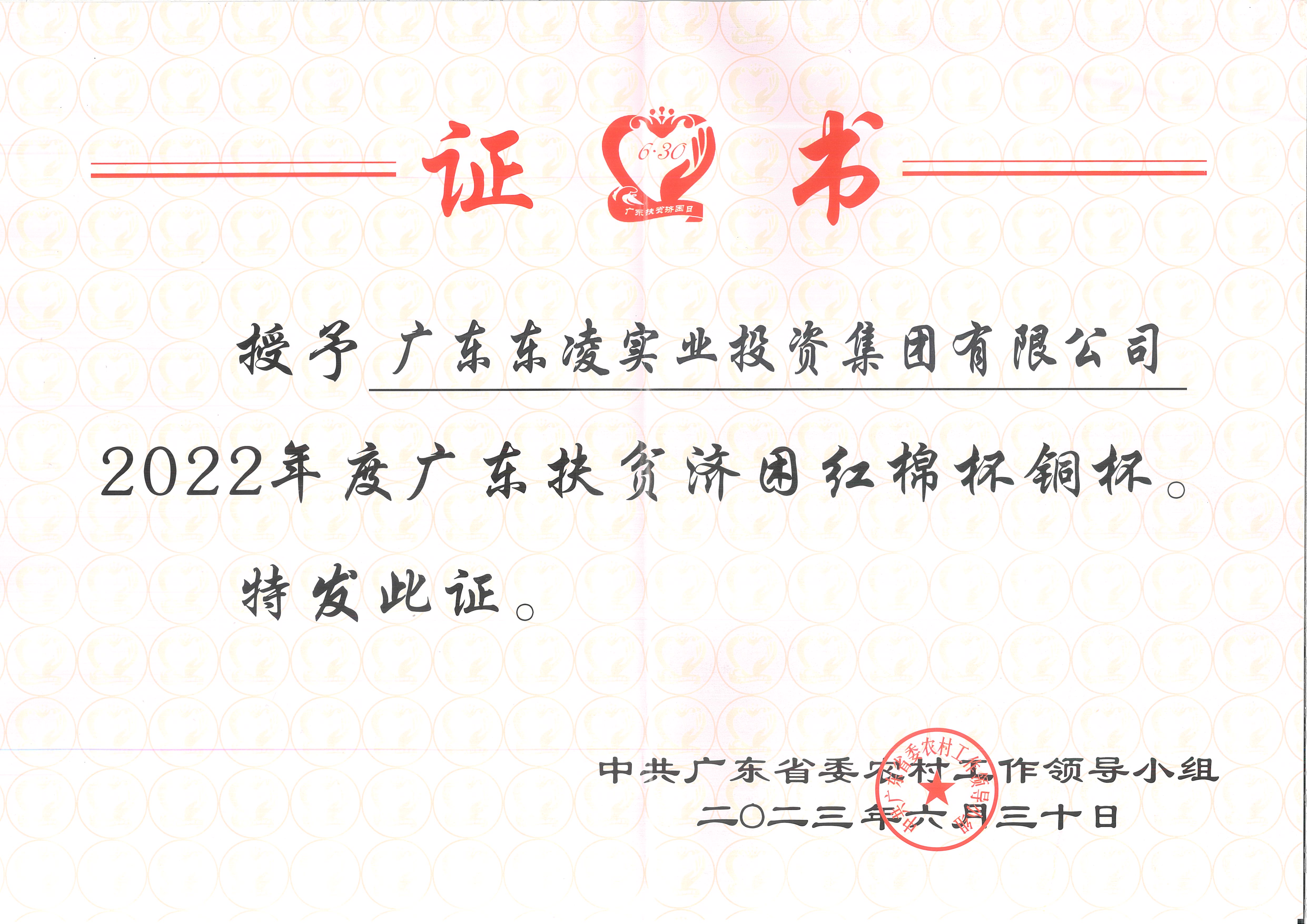 2022年度广东扶贫济困红棉杯铜杯【证书】