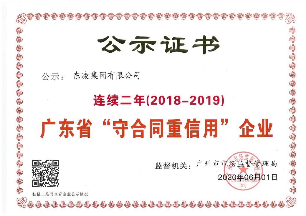 汇聚电竞智者集团有限公司荣获:连续二年(2018—2019)广东省“守合同重