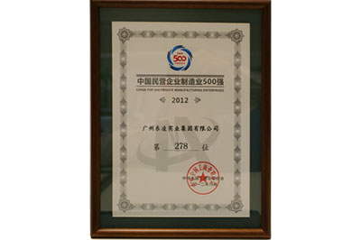 广州汇聚电竞智者实业集团有限公司荣获国民营企业制造业500强--2012年