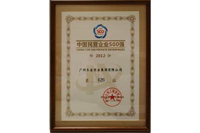 广州汇聚电竞智者实业集团有限公司荣中国民营企业500强--2012年